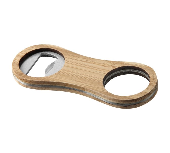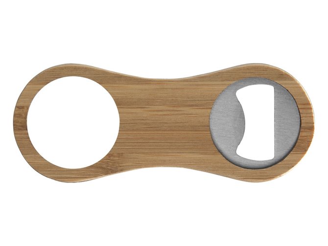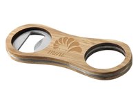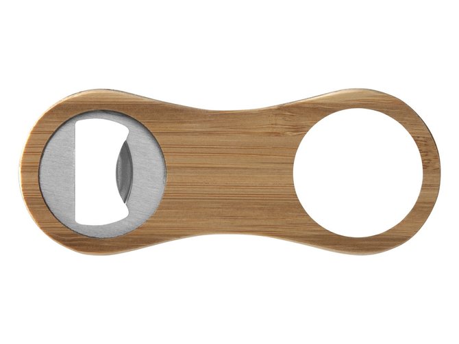 Ouvre-bouteille en bambou robuste avec zone centrale à personnaliser avec votre marque.