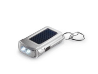 Porte-clés Torche Solaire, satiné et argenté avec 2 LED blanches alimentées par énergie solaire.