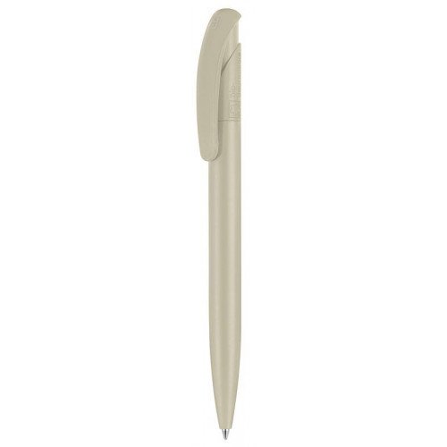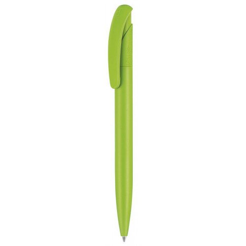 Stylo à bille rétractable biodégradable injecté à partir de matériaux renouvelables (canne à sucre). Clip en plastique standard brillant.