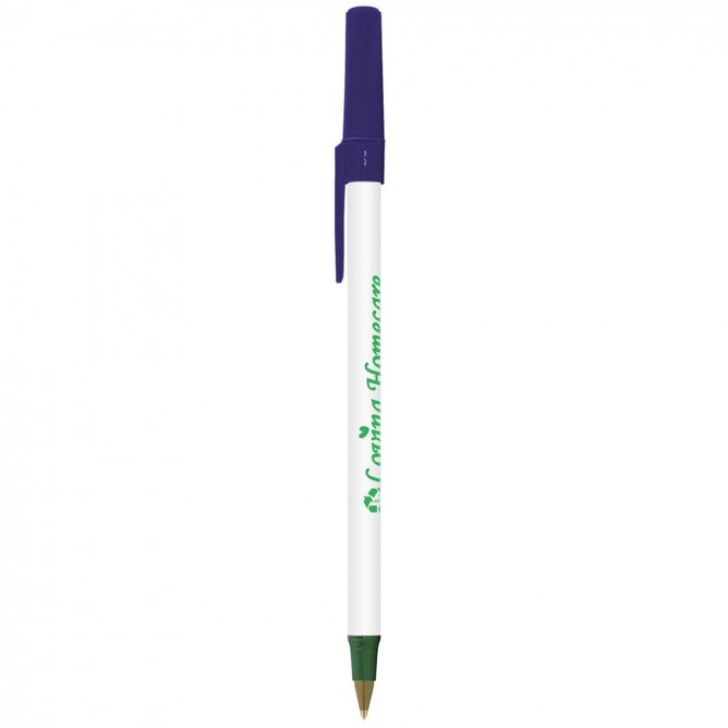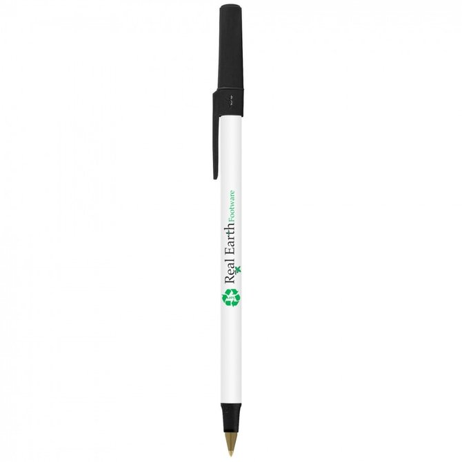 Stylo à bille Round Stic Ecolutions est fabriqué avec 70 % de matière recyclée.