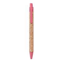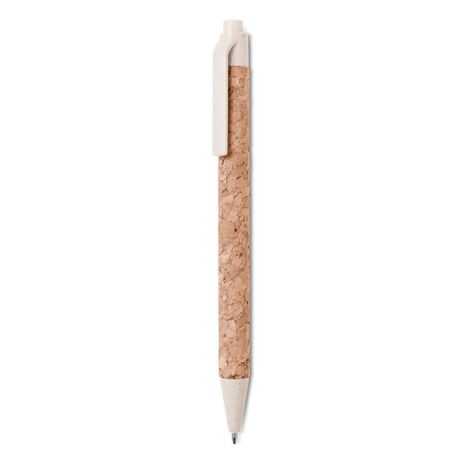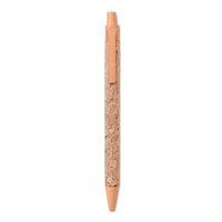 Stylo bille poussoir avec corps en liège et paille de blé (50%) et plastique PP (50%).
