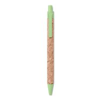 Stylo bille poussoir avec corps en liège et paille de blé (50%) et plastique PP (50%). Encre bleue.