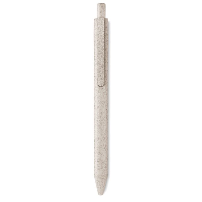 Stylo bille poussoir en paille de blé 50% et PP 50% (encre bleue).